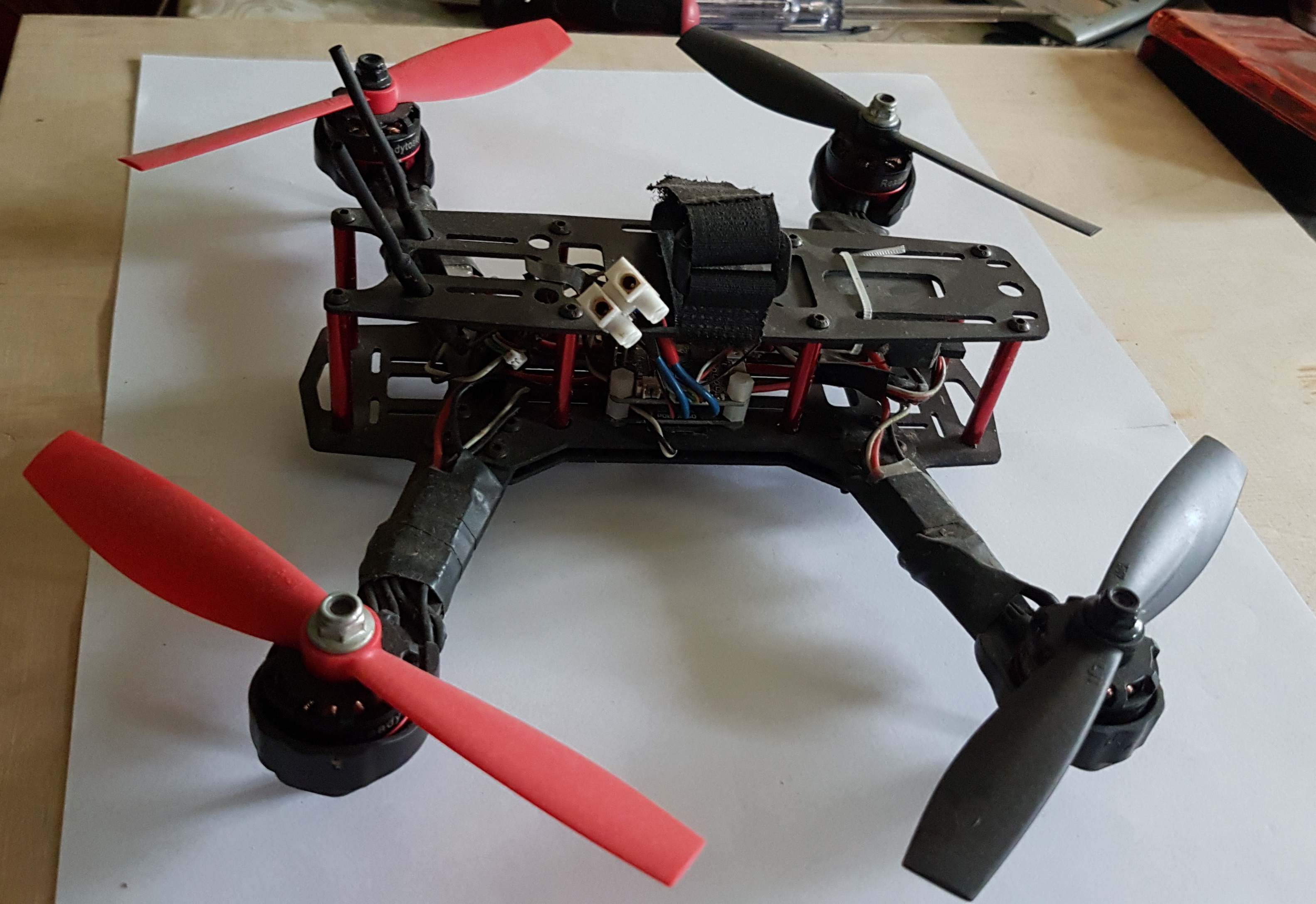 Na początek zamieszczam zdjęcia, a z czasem dodam filmik ze startu i lotu drona, oraz omówię szczegółowo wyżej wymienione etapy budowy.