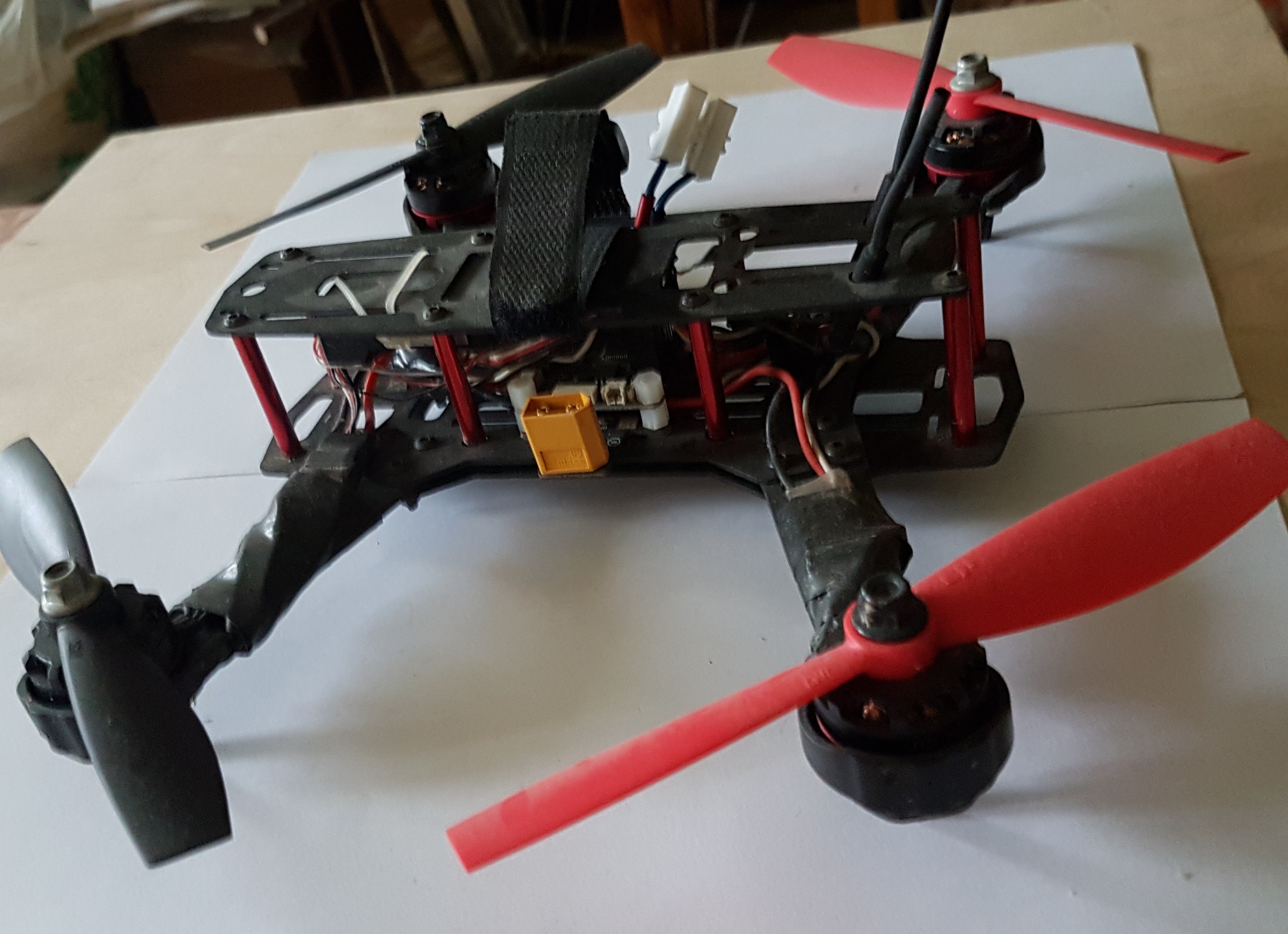 Moje podejście do tematu było takie że: najpierw kupiłem sobie tańszego drona, takiego ze sterowaniem RC a nie Wi-Fi bez możliwości zawisu w powietrzu (czyli bez modułu "barometr"), bez GPS, taką lekom wersie do latania w pokoju.